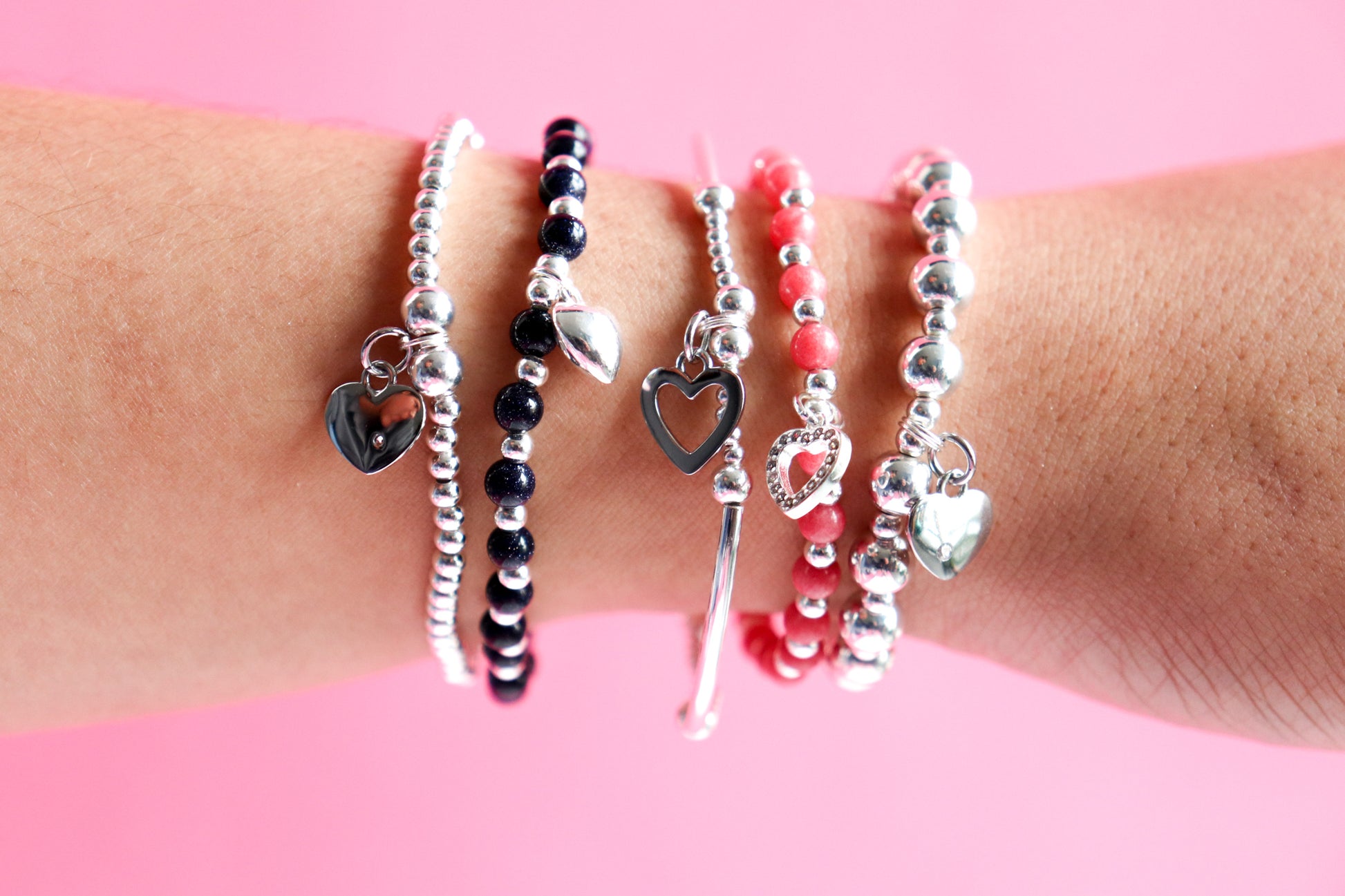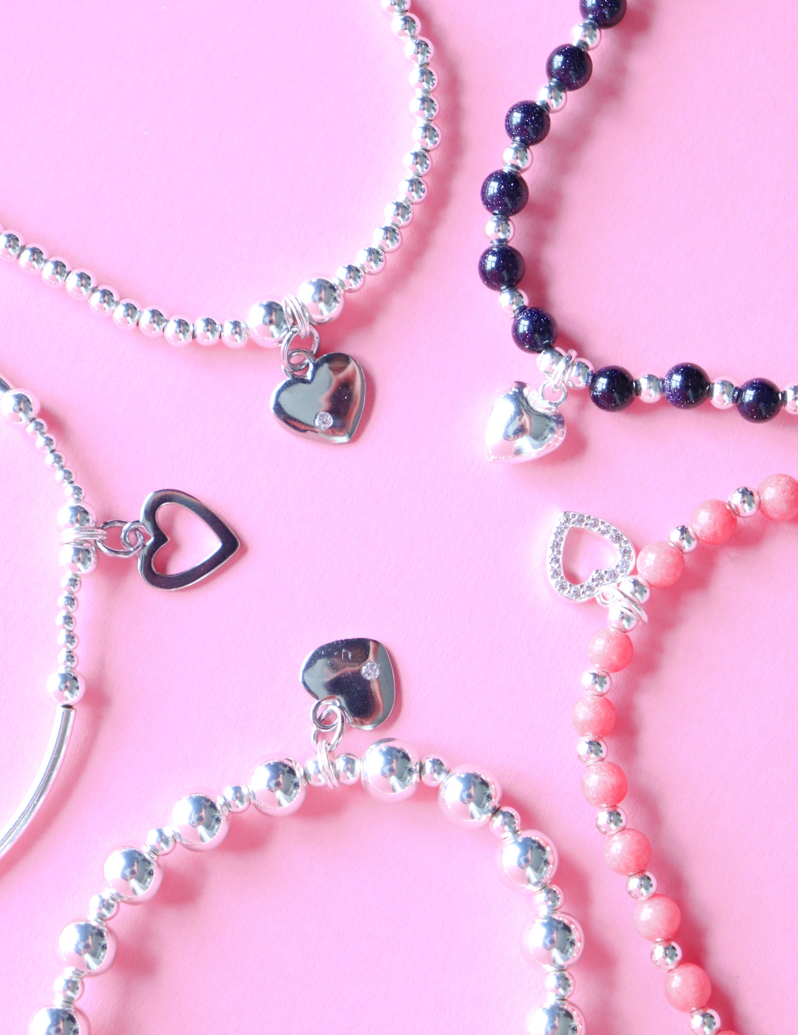 Carry your heart on your sleeve with our bold and beautiful Love Heart stacking bracelet, consisting of 5mm and 2mm alternating beads and created using Sterling Silver. This elegant and eye-catching addition to our Stackable collection is a popular choice for layering. Includes our solid Sterling Silver Heart charm, that has a dainty cubic zirconia inset, giving this sweet charm an extra little sparkle!