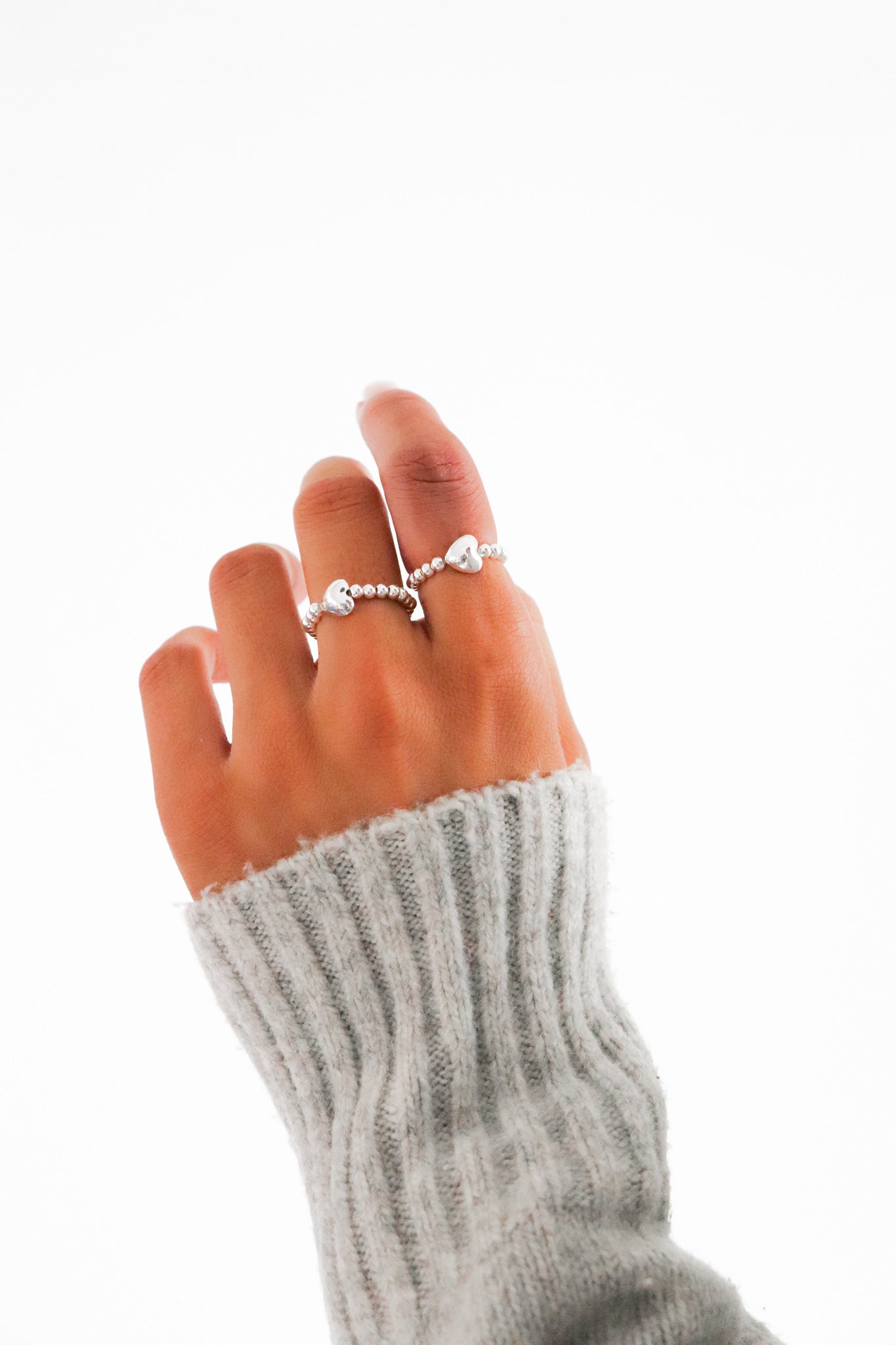 These gorgeous beaded rings are a stylish and contemporary addition to our Stackable Collection. Designed using smooth Sterling Silver 3mm beads including a sweet little 5mm puffed Heart bead. They are a perfect match to any jewellery, or add this to other stackable rings/bracelets from our collection for a personal and unique style.