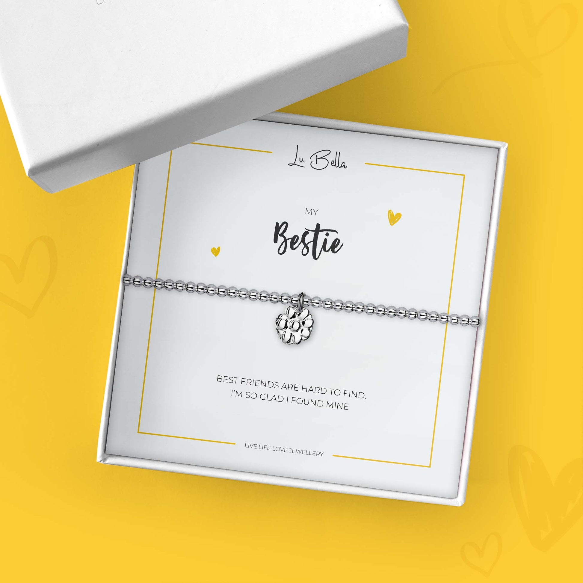 Look no further than Lu Bella's My Bestie friendship bracelet. Perfectly crafted and designed with love, this delicate silver plated beaded bracelet is a truly special way of telling someone how important they are in your life. The bracelet also comes on a card that reads 'Best friends are hard to find, I’m so glad I found mine', giving it an extra personal touch.