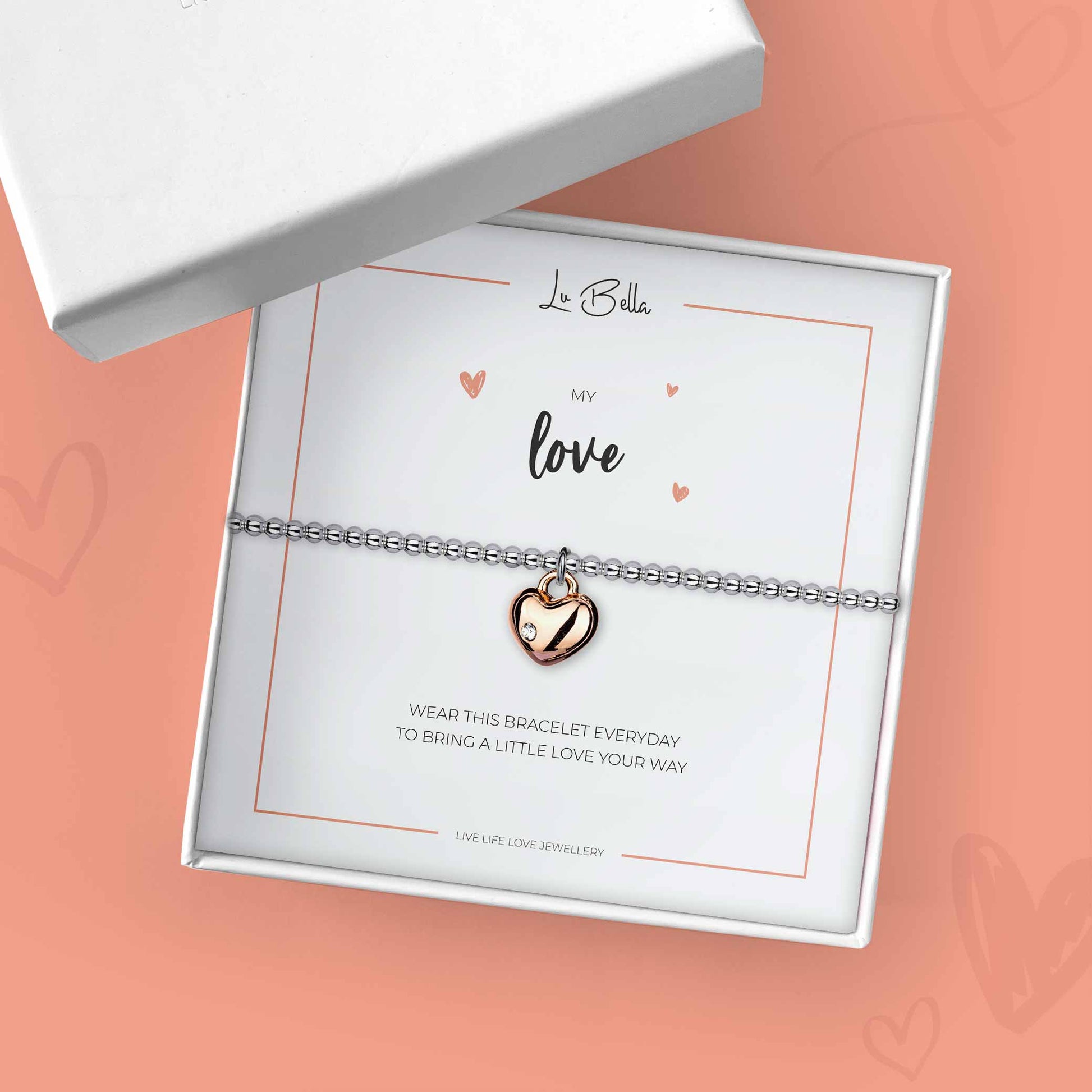 Show her how much she means to you with our Love Sentiments Friendship Bracelet! Our 3mm silver plated bracelet is adorned with a rose gold heart charm and small cubic zirconia stone. The sentiment behind the bracelet will surely touch her heart; printed on the card that reads 'Wear this bracelet everyday to bring a little love your way'.