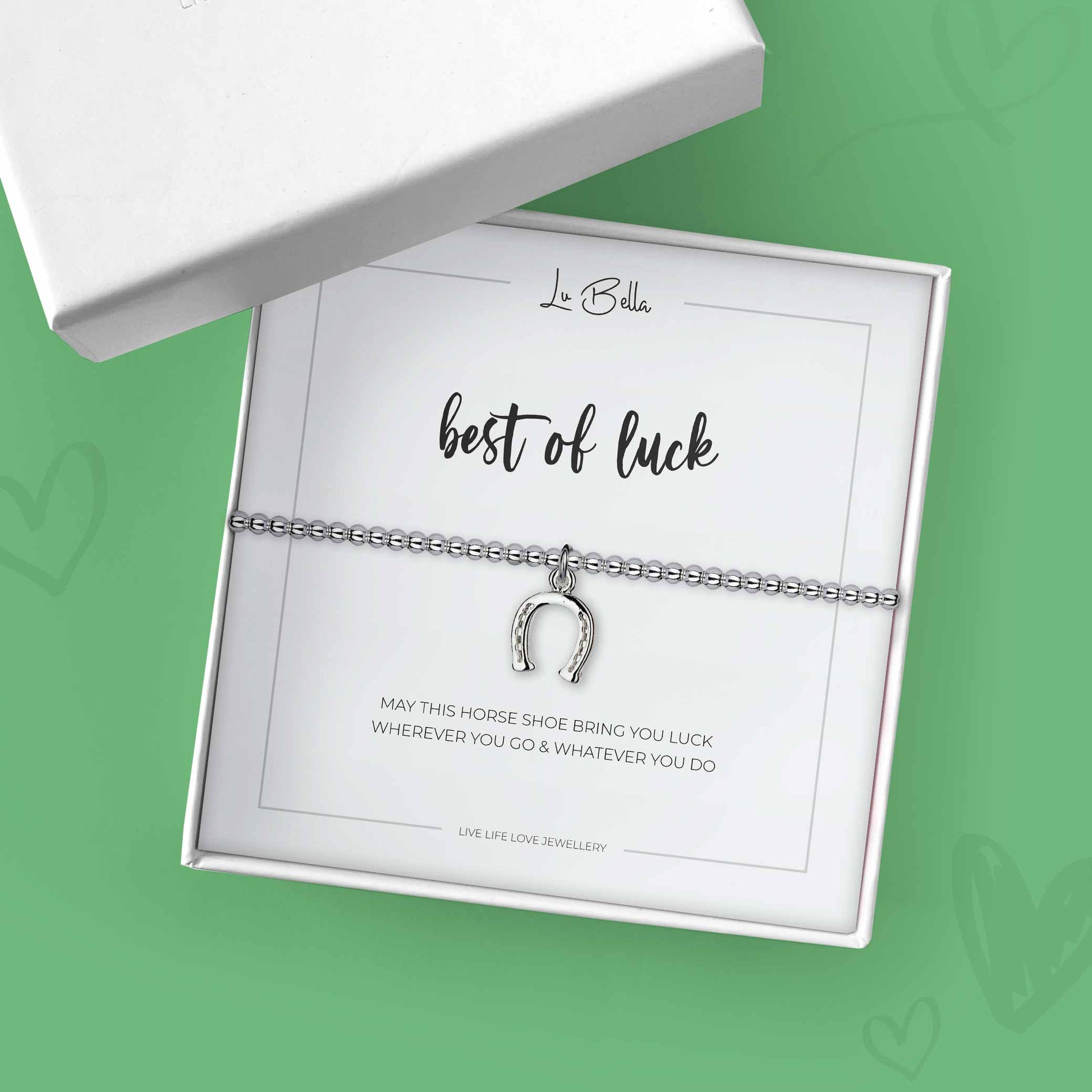 Our Best of Luck Sentiments Friendship Bracelet is the perfect way to spread joy. This silver-plated stretchy bracelet with its Horse Shoe charm is a unique and thoughtful thing they're sure to love – not only today, but forever! Plus, each bracelet comes complete with gift bag, card and backed on a sentiment card that reads 'May this horse shoe bring you luck, wherever you go & whatever you do'.