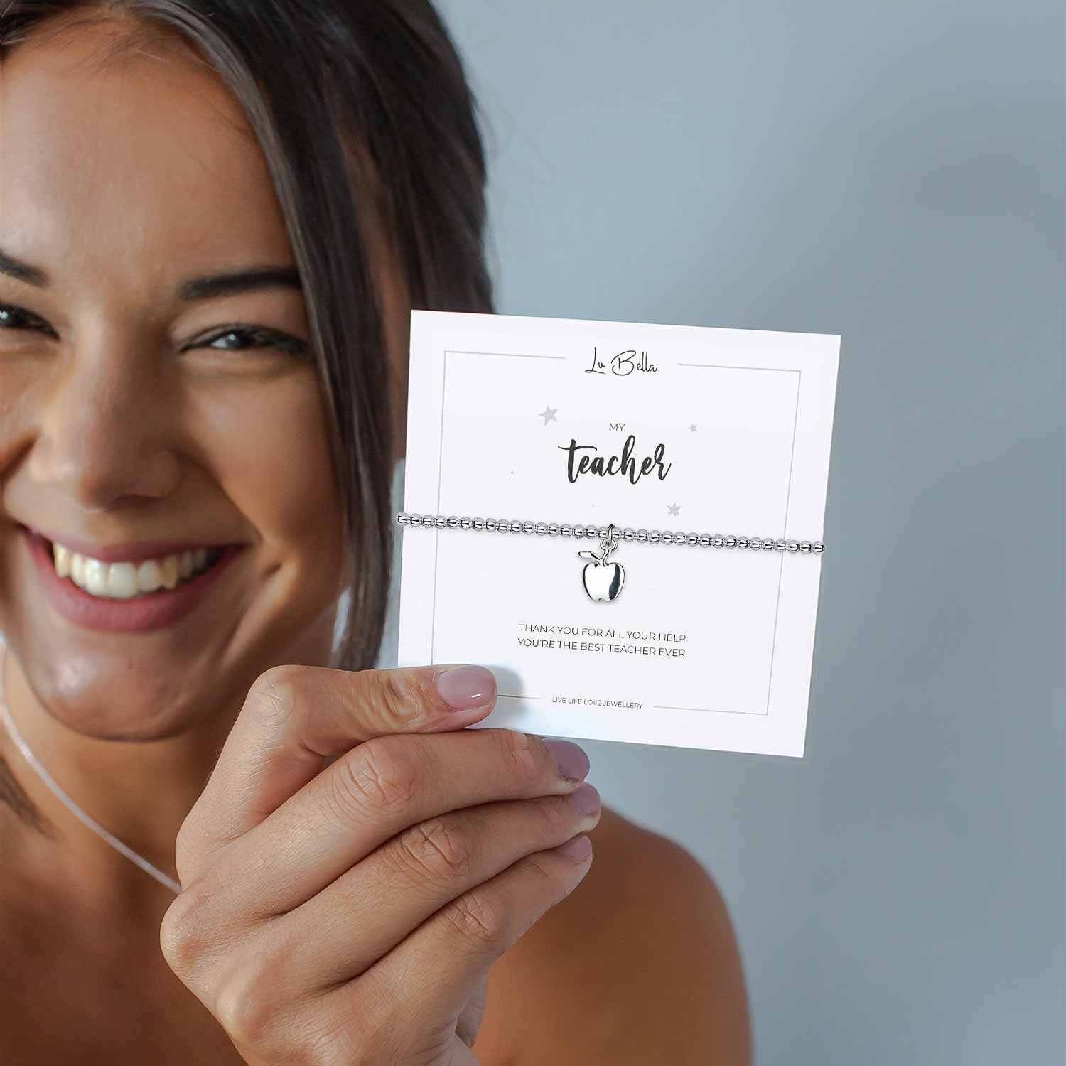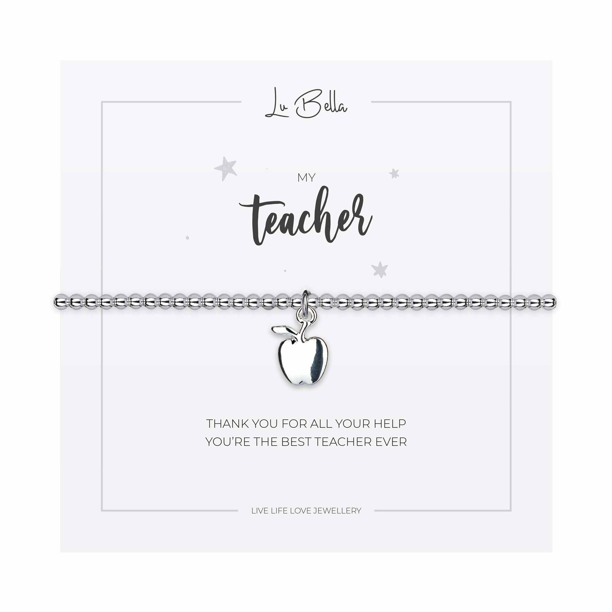 Teaching is a work of heart... Whether you've graduated or just finished the school term, let her know she's appreciated with our silver plated charm bracelet. Includes a delicate charm on a lovely sentiment card that reads 'Thank you for all your help, you’re the best teacher ever'.