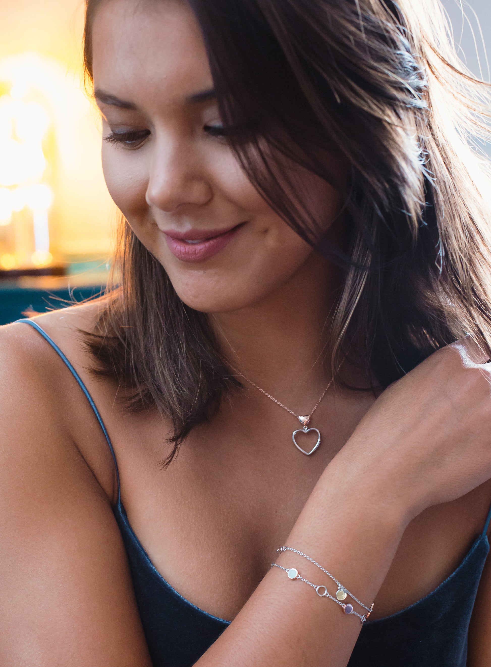 For that special person in your life who has a "Heart Of Gold" A beautiful mix of Silver a Rose Gold this elegant necklace features a small but exquisite chubby heart that has been finished with a high quality Rose Gold plating that holds a fine Sterling Silver open heart drop. Add a touch of glam to your everyday outfit or dress up your evening style with this simple and beautiful necklace.