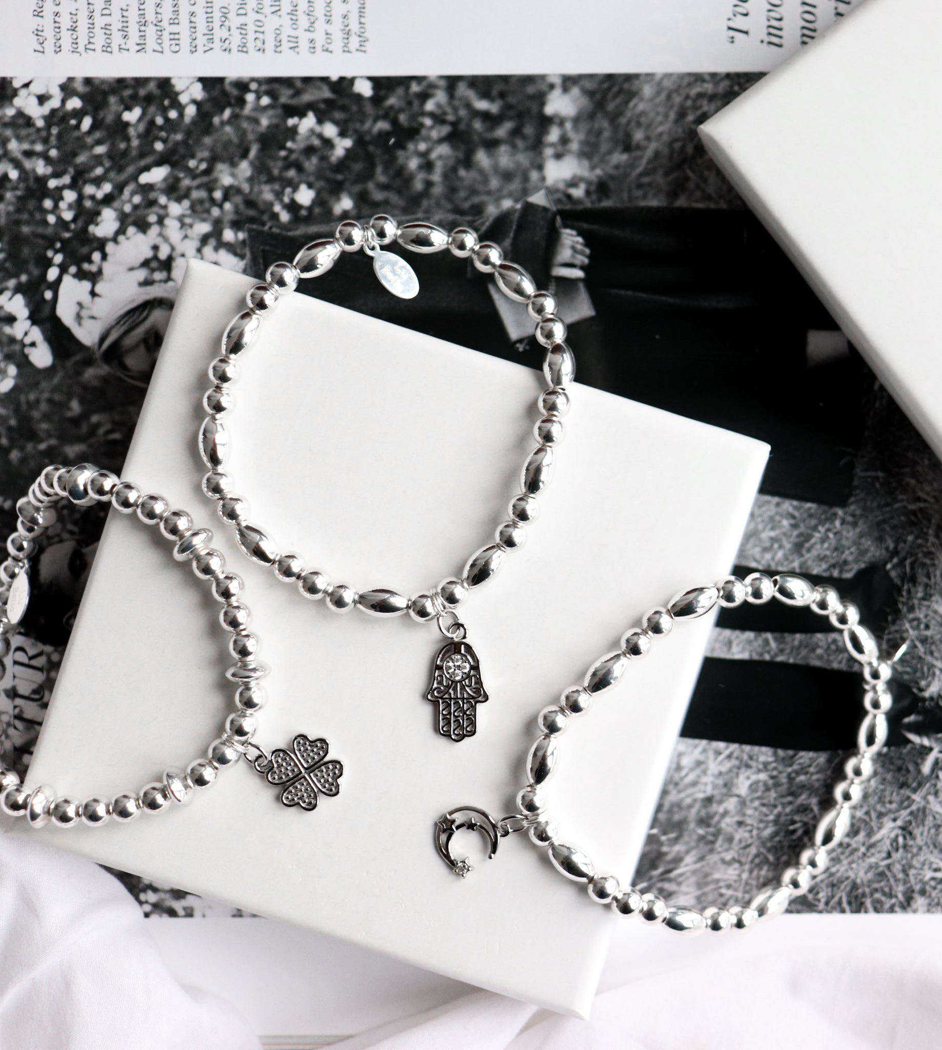 Symbolising protection, good luck and good fortune our Hamsa stacker will pair beautifully with your boho style stackers or send blessings to someone special with this sentimental gift. Our stylish 5mm Oval bead bracelet has been beautifully crafted using Sterling Silver beads.